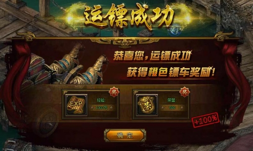 运镖起点在王城,运往战乱的中立地区(秦邑),运镖成功后,玩家将获取大量用于晋级军衔的荣誉。