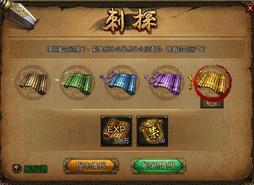 刺探奖励由情报品质决定,品质越高奖励越丰厚。