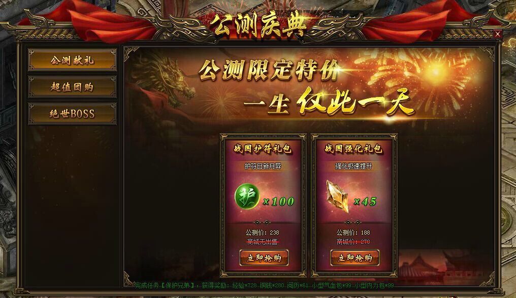 活动一:公测献礼,超值道具低价售